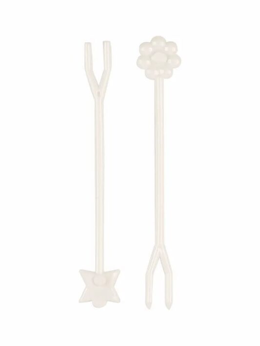 – Uç kısmında 2 veya 3 sivri diş bulunur; bu sayede mini atıştırmalıkları (patates kızartması, cips, meyve dilimleri) kolayca tutar.
